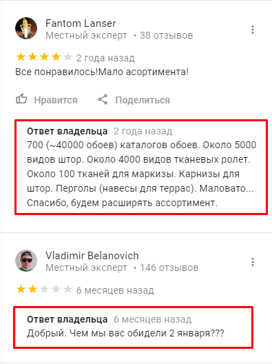Иногда маркетолог или владелец отвечает только на негативные отзывы, и это уже