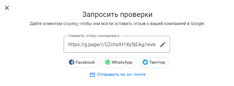 дает возможность клиенту оставить отзыв сразу в нескольких геосервисах (Google, Яндекс, 2ГИС и т.